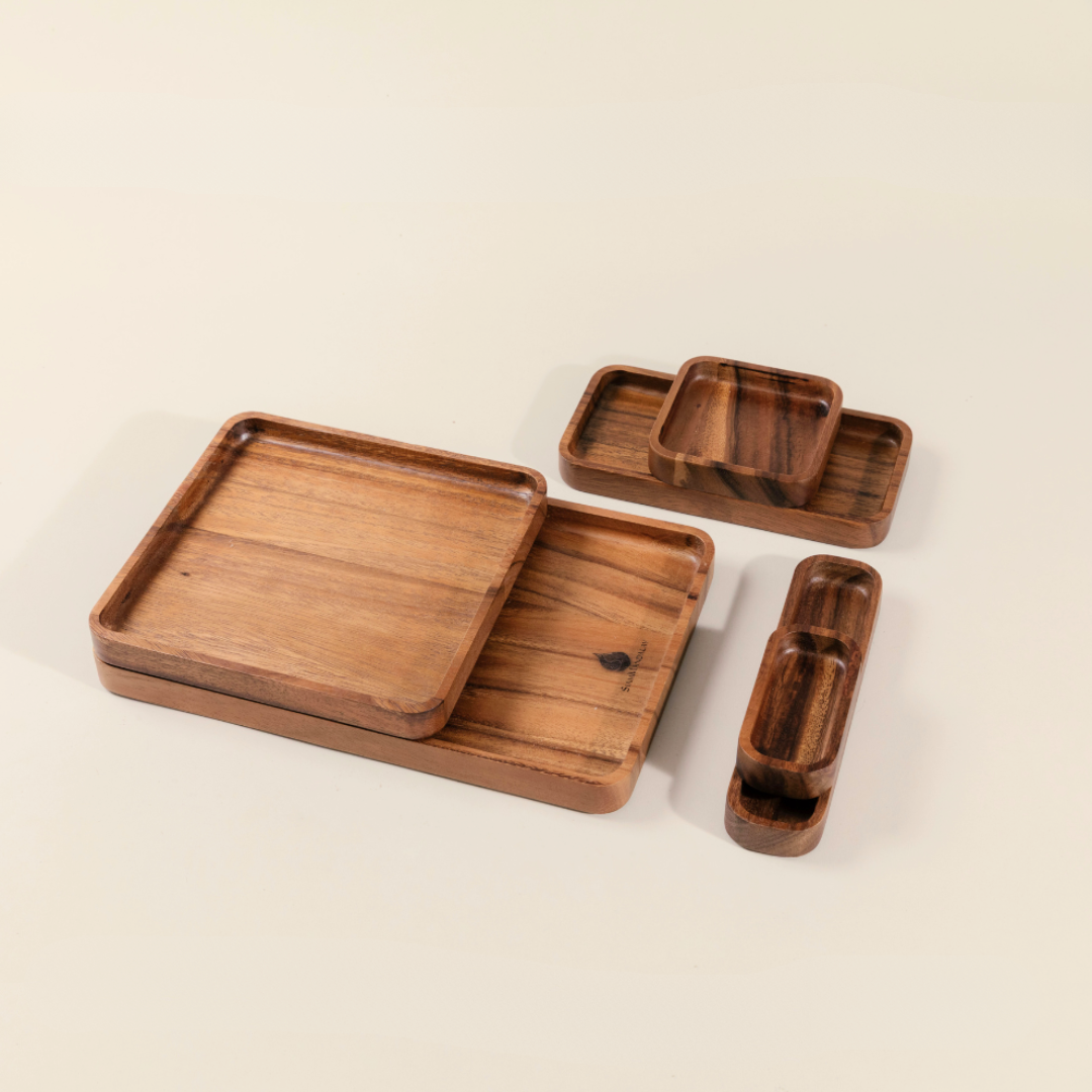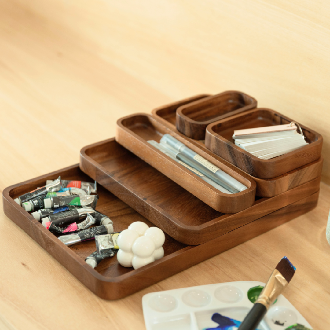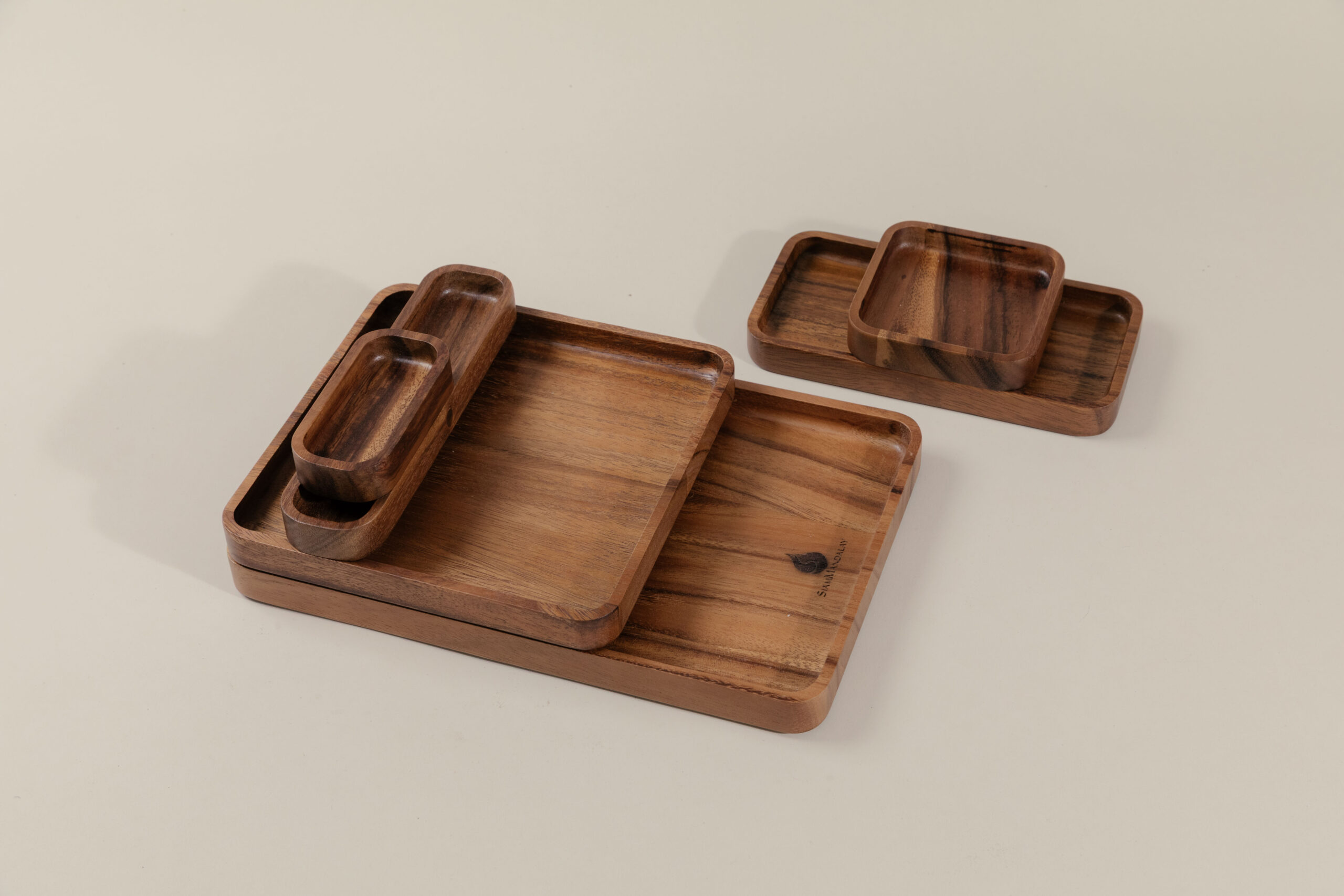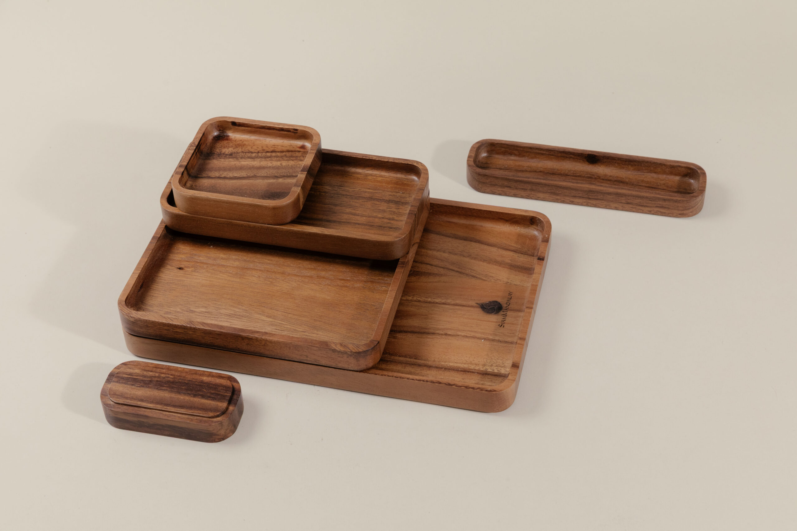 Crafted from sustainable acacia wood, this tray set is eco-friendly, long-lasting, and gentle on surfaces—an ideal solution for anyone seeking both organization and style.