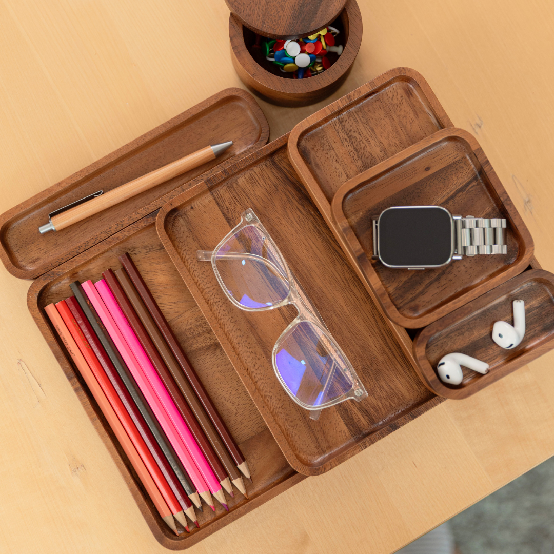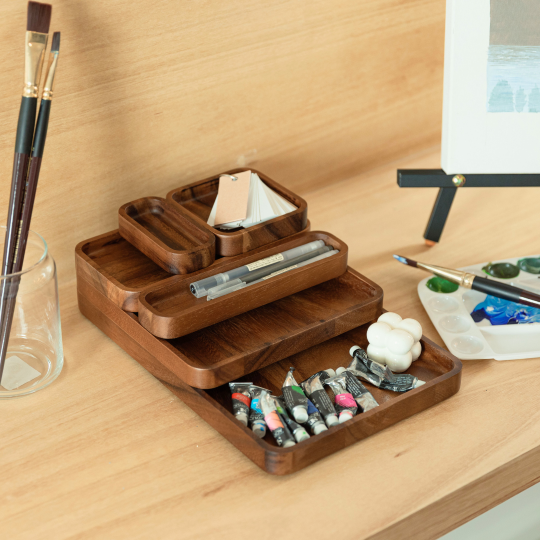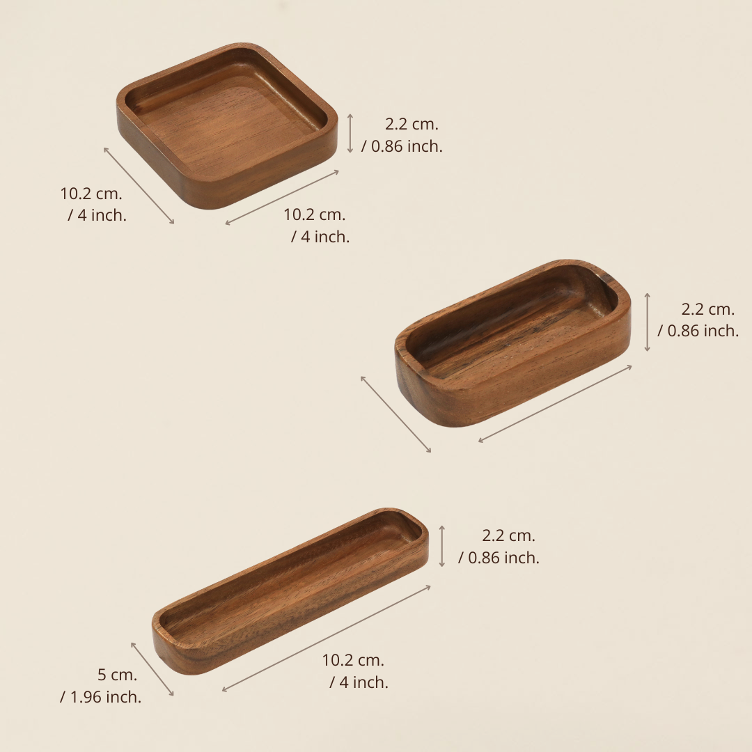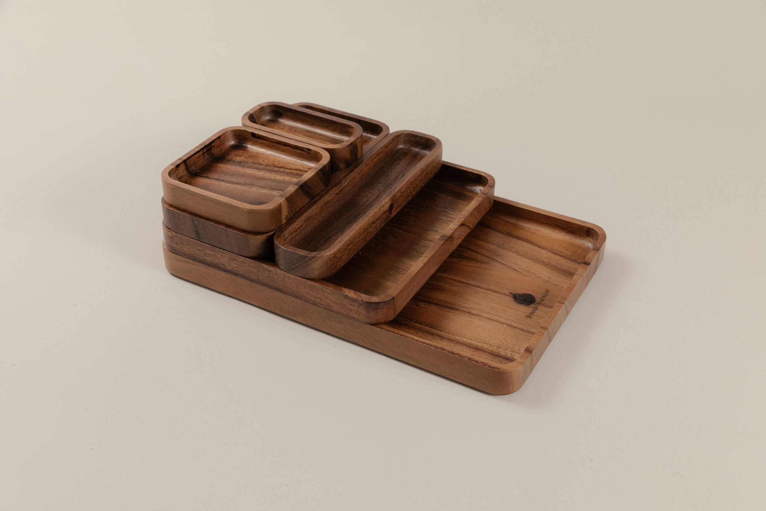 Crafted from sustainable acacia wood, this tray set is eco-friendly, long-lasting, and gentle on surfaces—an ideal solution for anyone seeking both organization and style.