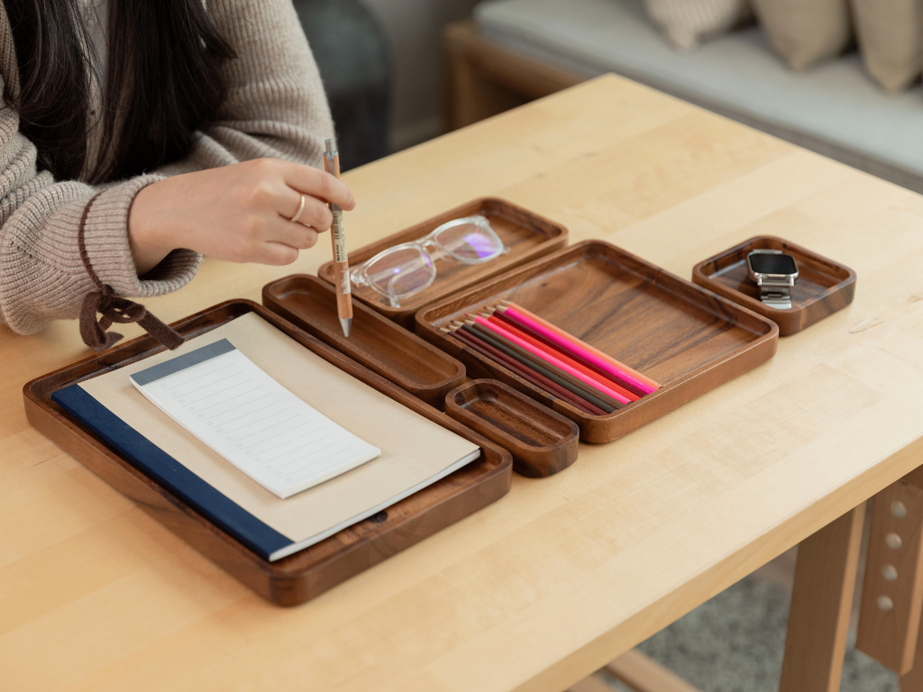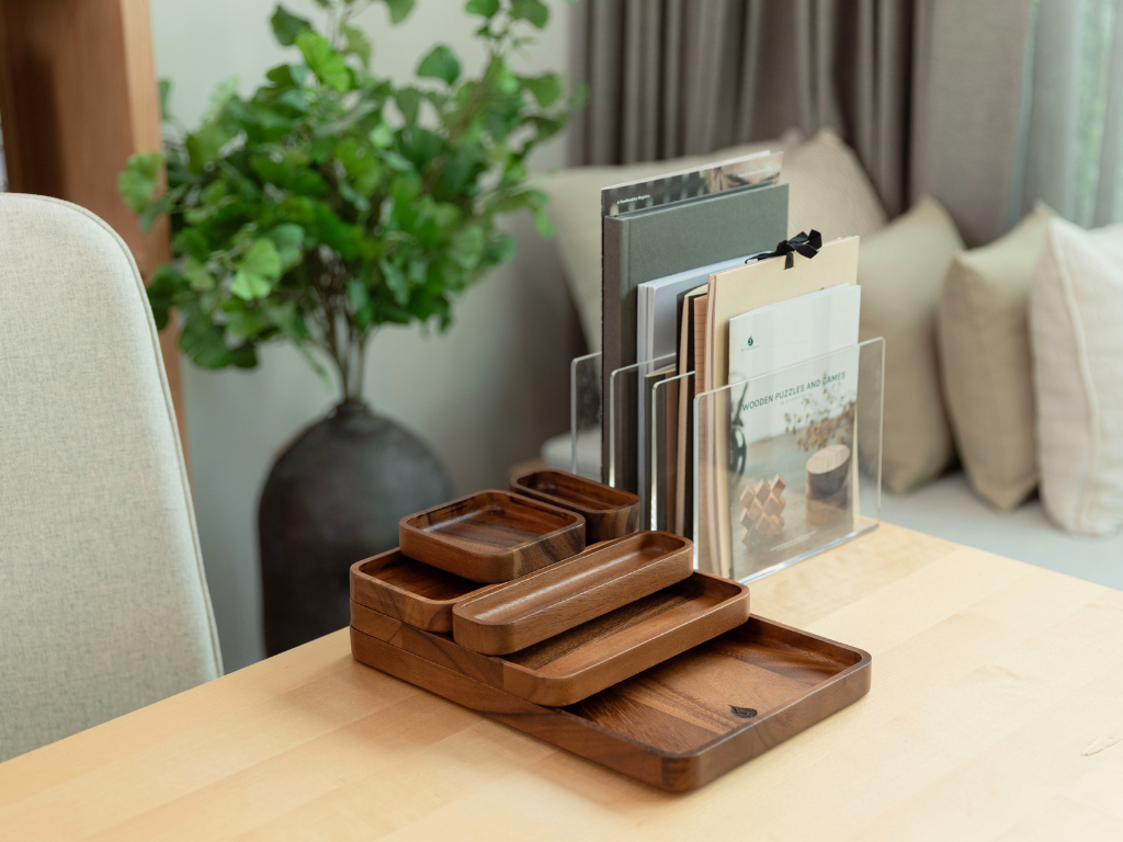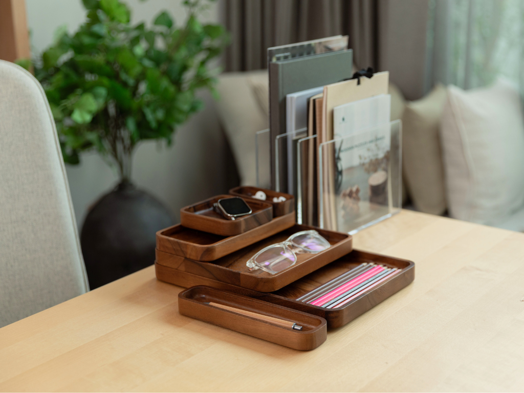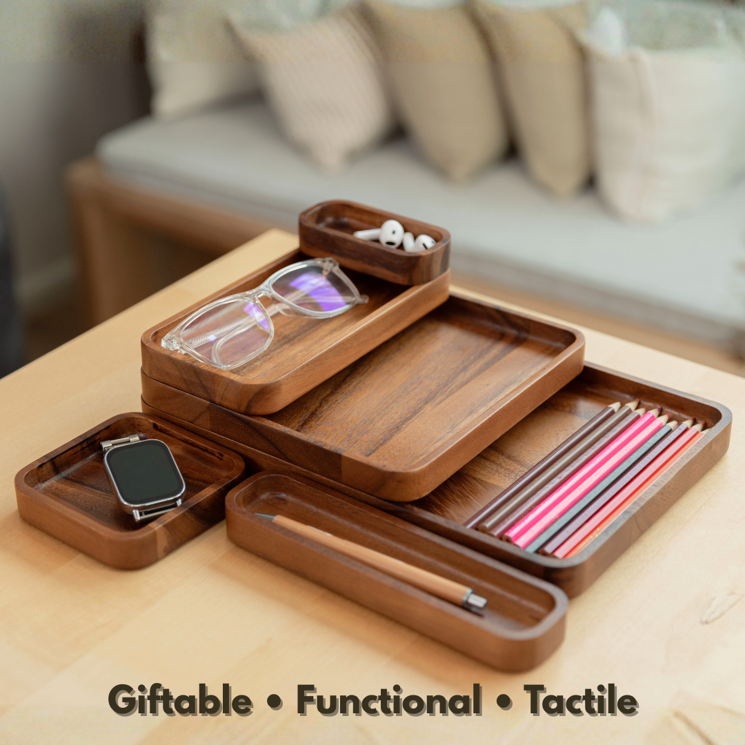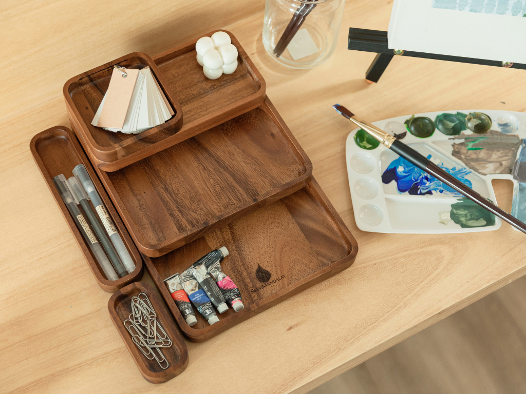 Crafted from sustainable acacia wood, this tray set is eco-friendly, long-lasting, and gentle on surfaces—an ideal solution for anyone seeking both organization and style.