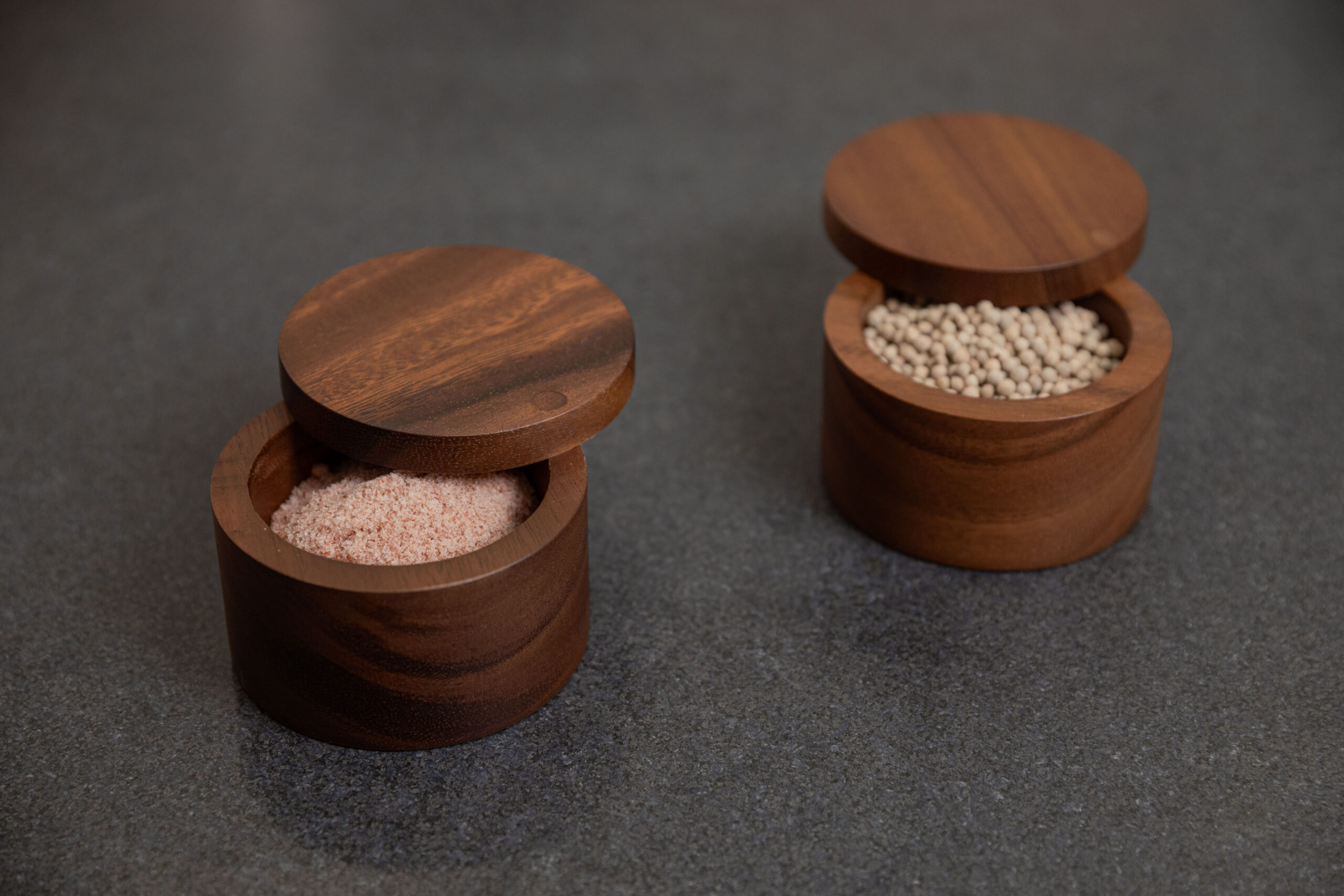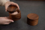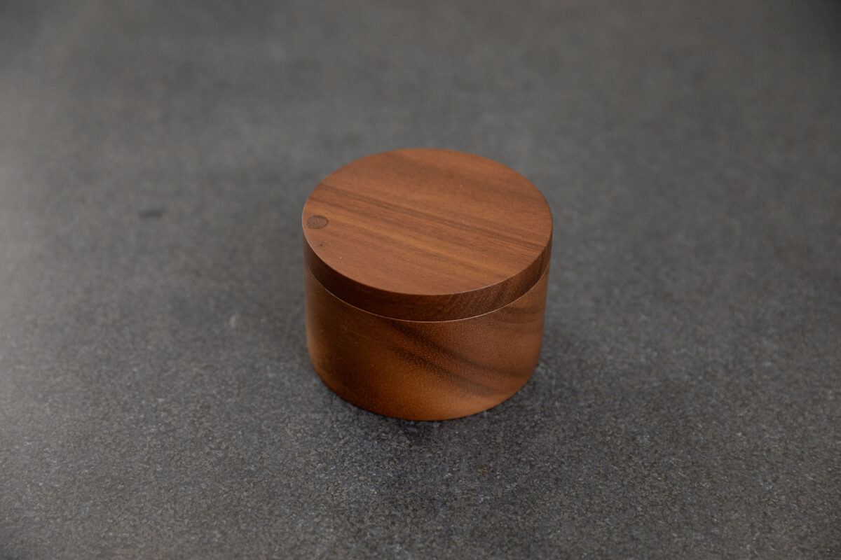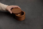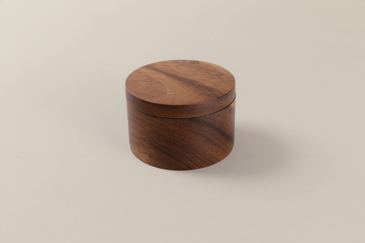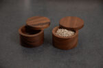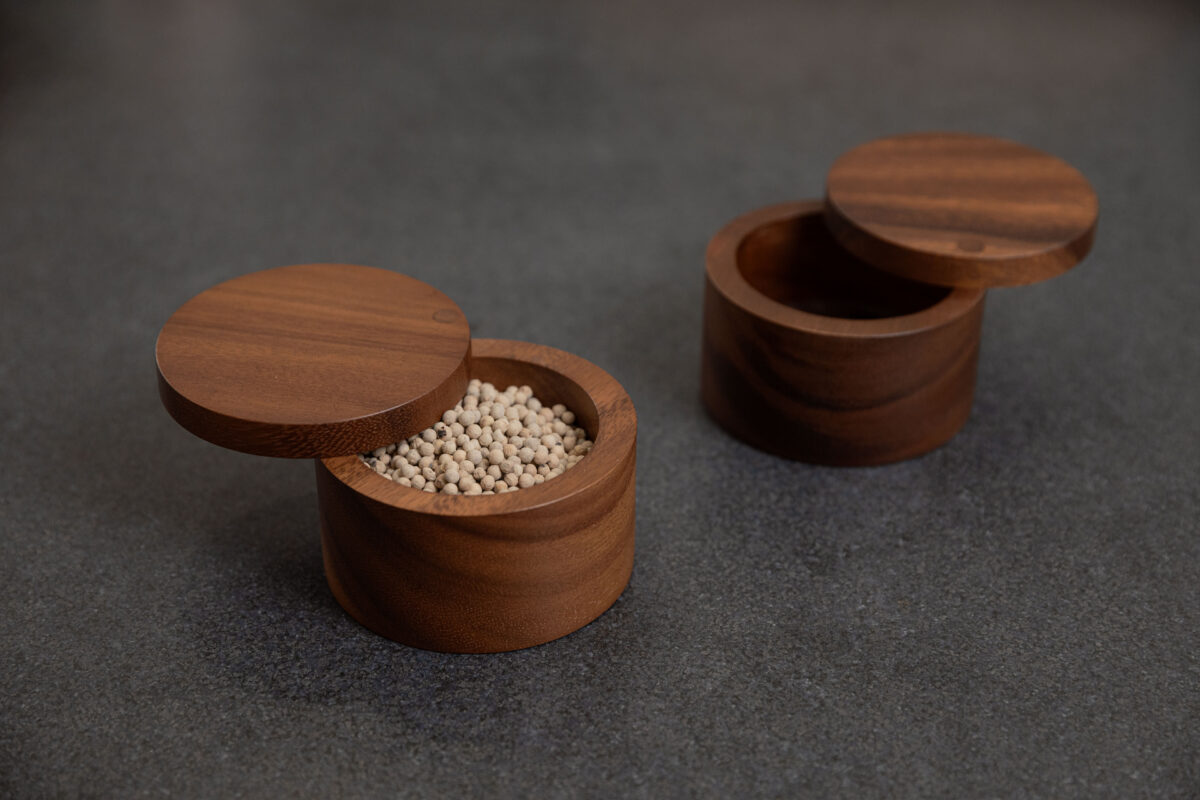 SiamMandalay’s Artisanal Salt Box from the Gourmet Collection; handcrafted for more beautiful and functional kitchen storage. This acacia wood container has a 360° swivel top which provides easy access to any seasoning or spice you may keep inside. Excellent for keeping your cooking salt fresh and separate from your serving salt.