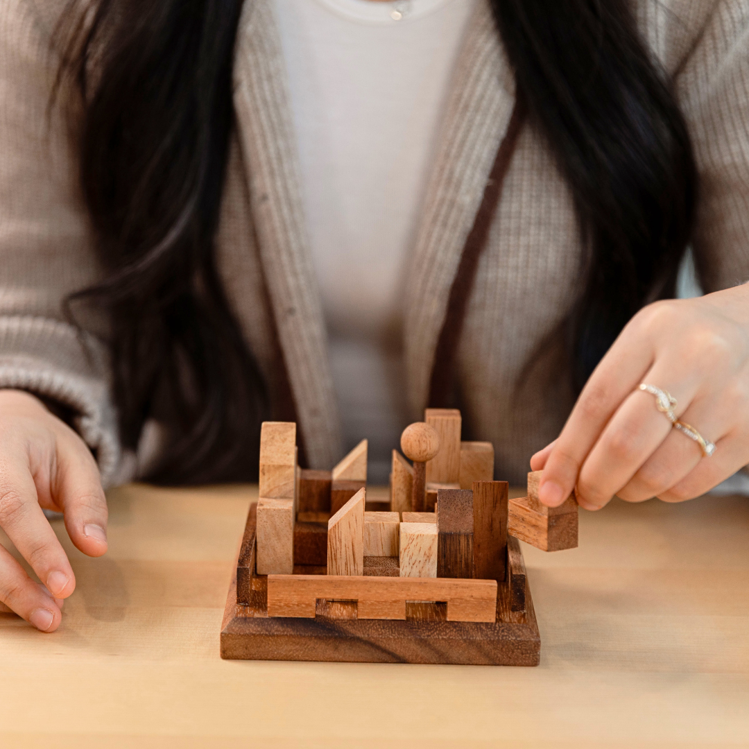 Challenge yourself with this beautifully crafted wooden logic maze, made from eco-friendly, sustainable hardwood. Each puzzle features interlocking wooden blocks that must be arranged in the right sequence, offering hours of hands-on fun for both adults and kids. Perfect for developing problem-solving skills, spatial awareness, and critical thinking, it’s a screen-free activity that relaxes the mind while keeping your hands busy.