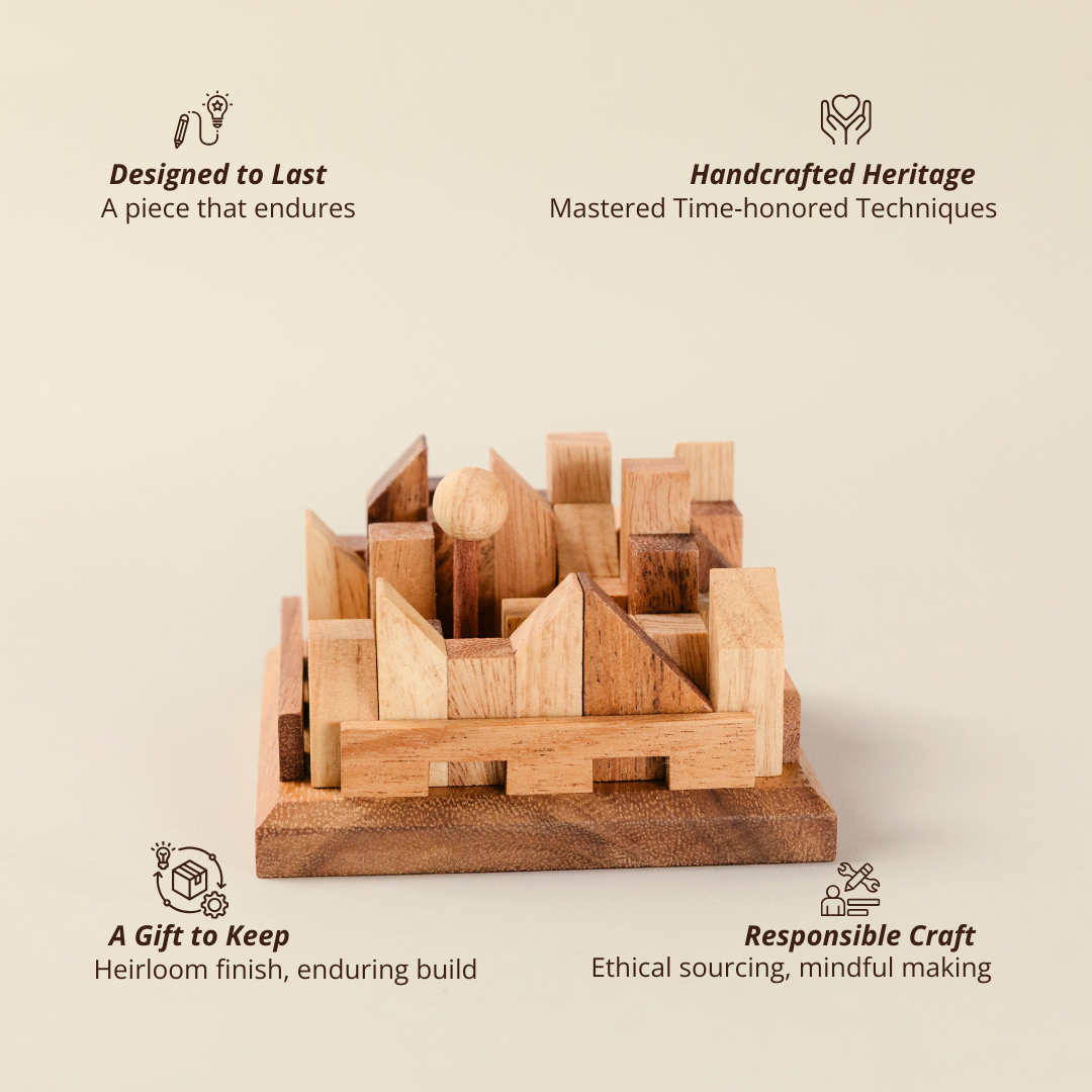 Handmade Natural Wood: Each puzzle is crafted from sustainable hardwood with a warm, rustic charm.