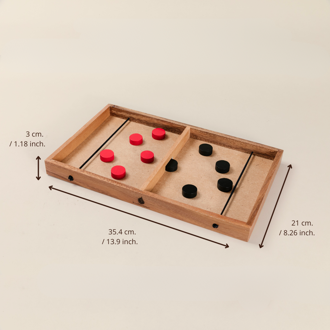 Fast-Paced 2-Player Fun – Launch pucks through the center slot to clear your side before your opponent.