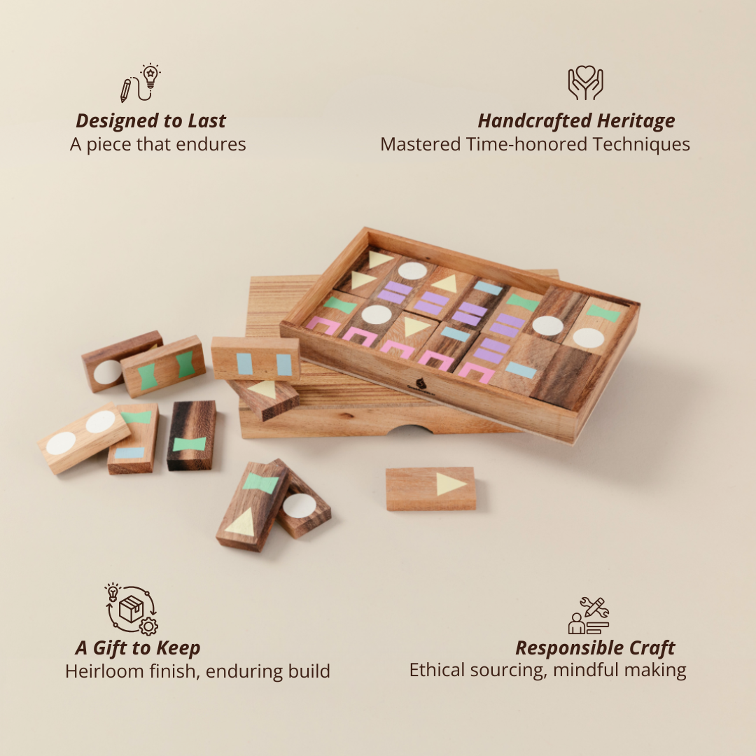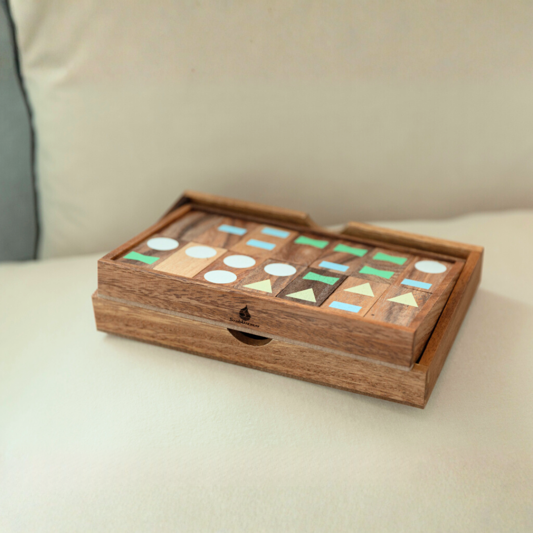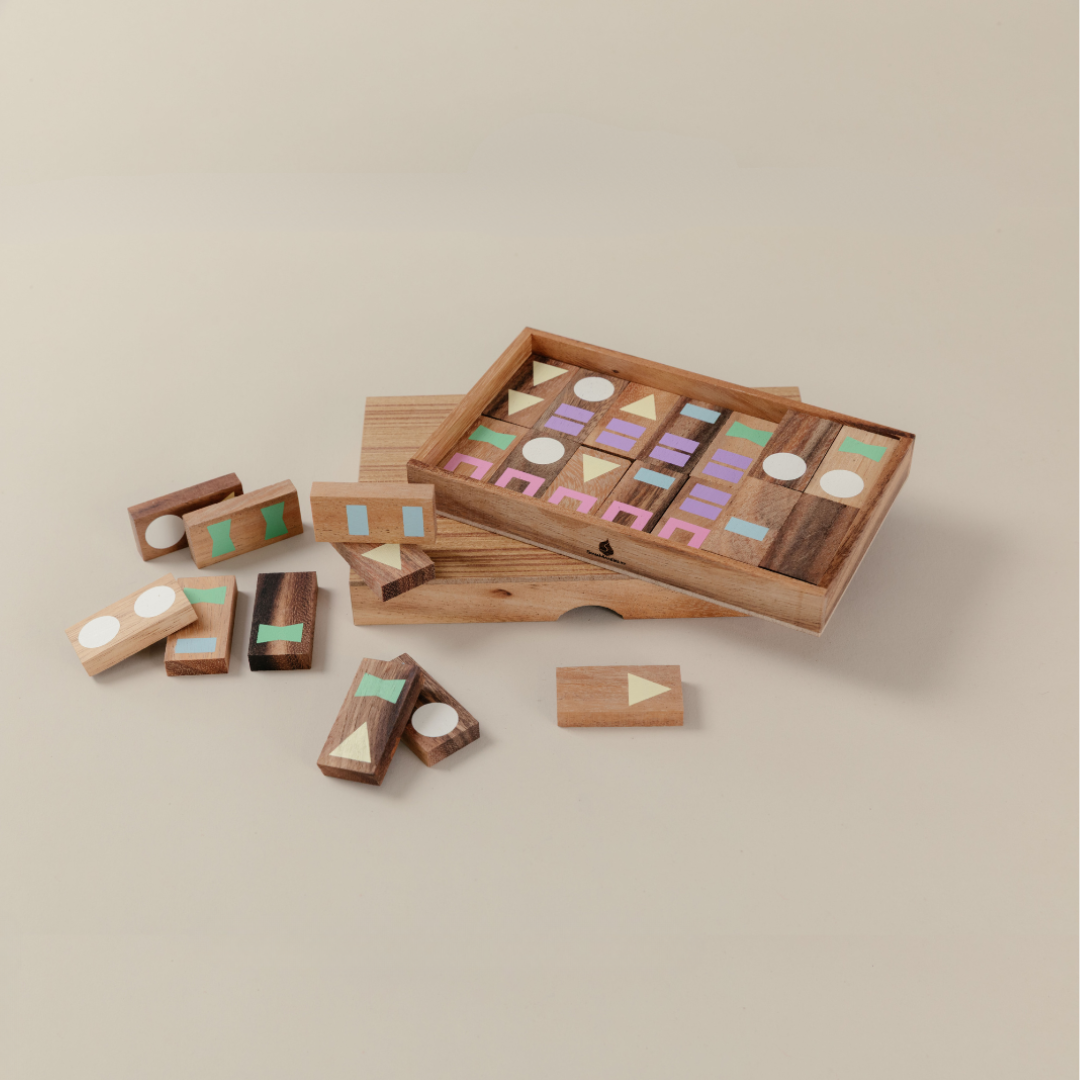 Geometric Wooden Domino Set
