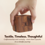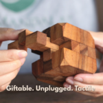 Hidden Passage is a seven-piece puzzle, handcrafted from monkeypod wood with care and consideration. Those same virtues will be needed to complete it.