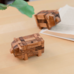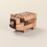A little kumiki puzzle is a 3D wooden interlocking puzzle that forms the shape of a pig. The word “Kumiki” is Japanese for “joining wood together”.