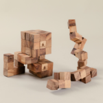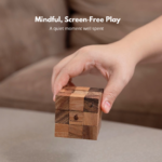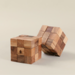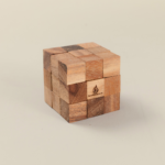 The Serpent Cube Puzzle is a classic brain teaser that consists of 27 individual wooden cubes connected by an elastic string running through them. The puzzle starts as a long, winding “snake” of cubes, and it is your job to flip and turn the cubes around to morph it back into a perfect square.