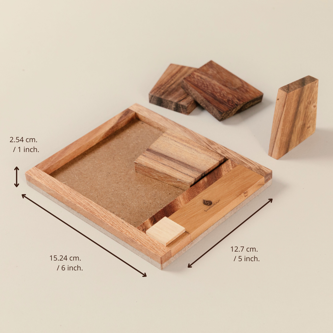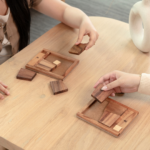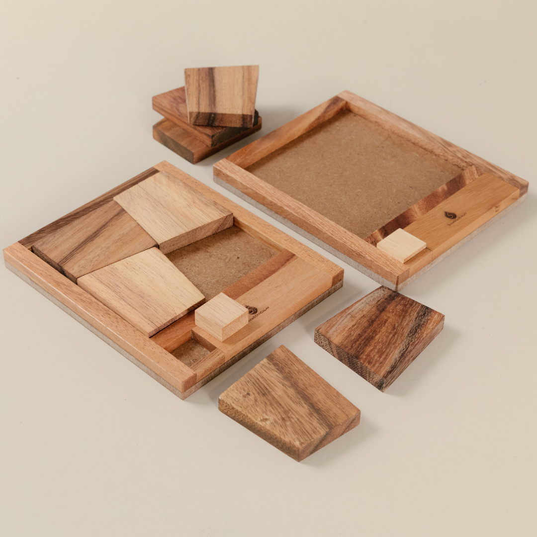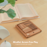 The Square Deal wooden tangram puzzle challenges your mind in a fun way. First, you move four wooden pieces. Then, you try to create space for the square. However, the solution is not as easy as it looks. As a result, this 3D brain teaser helps build spatial thinking and STEM skills for teens and adults.