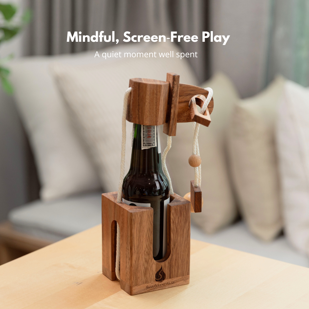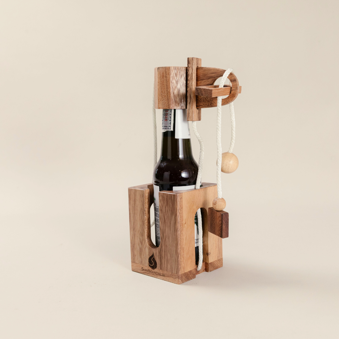 Unique Wooden Beer Puzzle: Challenge yourself or friends with this clever brain teaser and secure your favorite bottle.